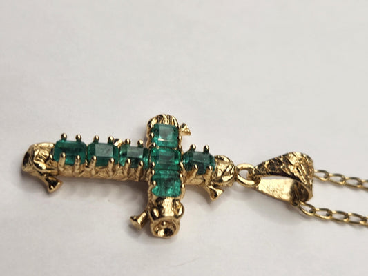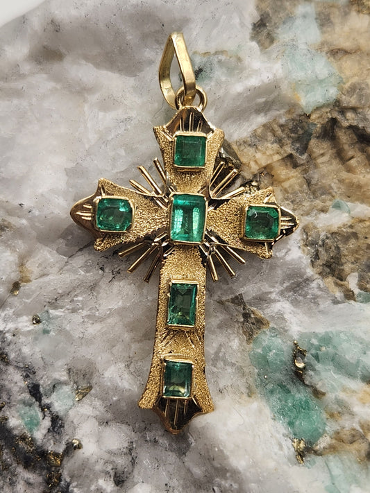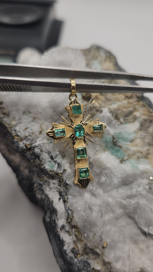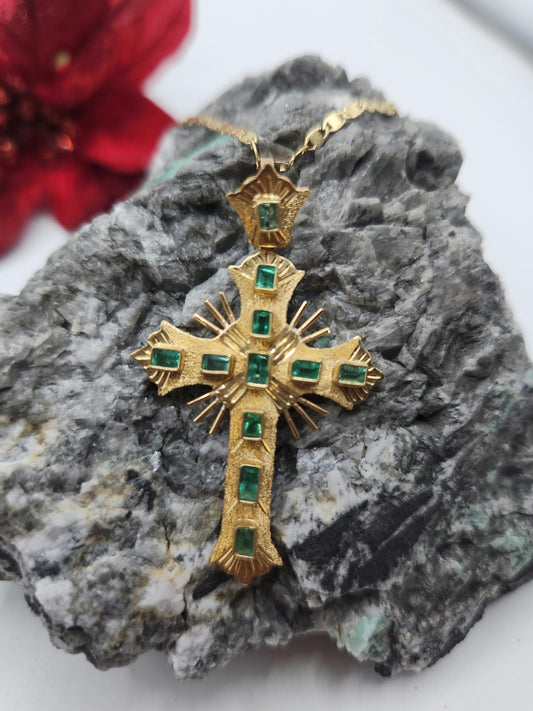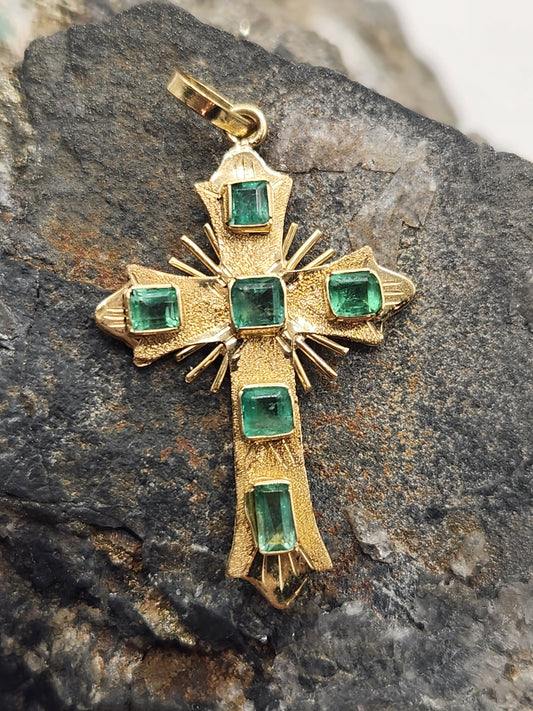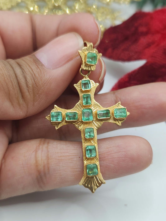18kt Yellow Gold Cross pendant with Colombian Emeralds – A Touch of Classic Elegance and Brilliant Exclusivity" gifts, natural emerald