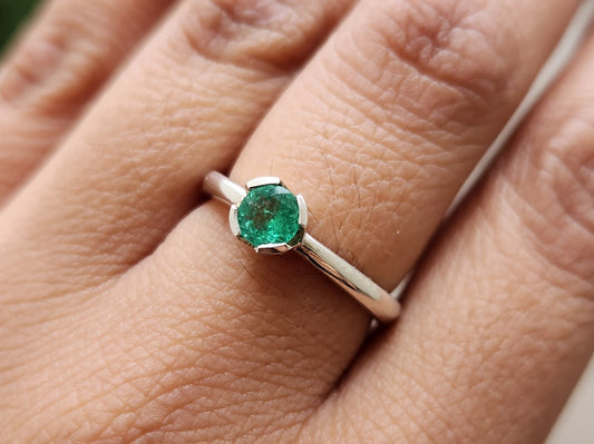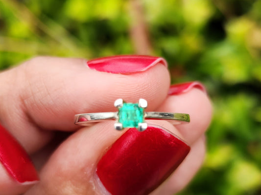 Solitaire emerald ring and silver, may birthstones, green stone ring, Colombian Emerald, Colombian jewelry, handmade jewelry, gift for she.