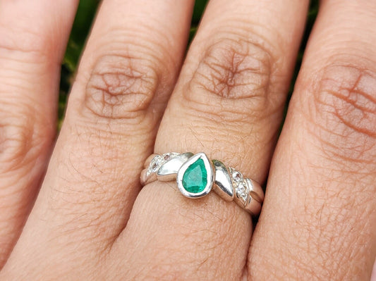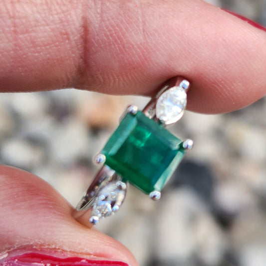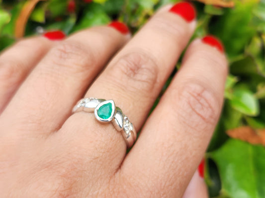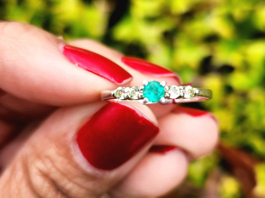 emerald ring and white topaz, may birthstone, greenstone, Colombian Emerald, Colombian jewelry, handmade jewelry, gift, women, silver ring