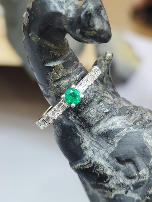 Exquisite 18K Platinum Emerald & Diamond Ring – Handmade Luxury Jewelry, Colombian May Birthstone, Vivid Green Elegance for Special Gifts