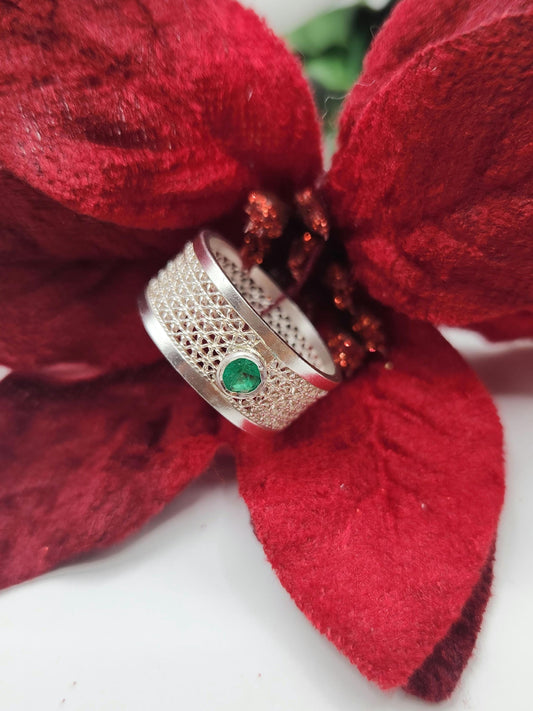 Emerald ring and silver, may birthstone, Colombian Emerald, filigree Colombian jewelry, handmade jewelry, gift for she, silver ring.