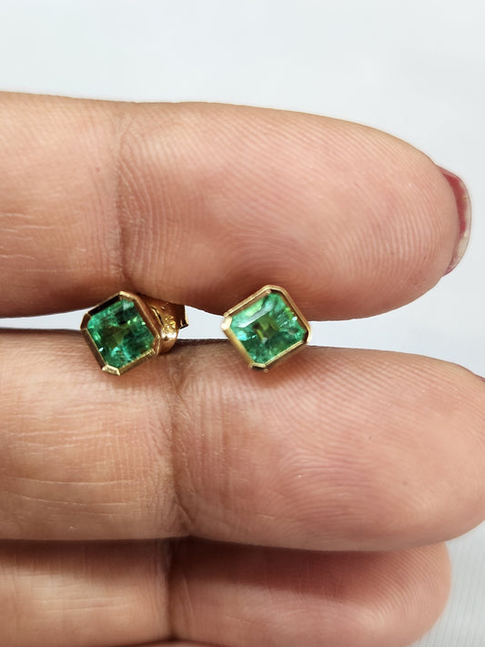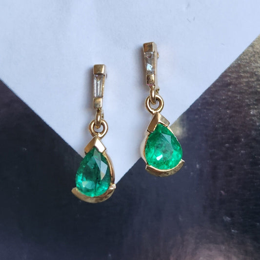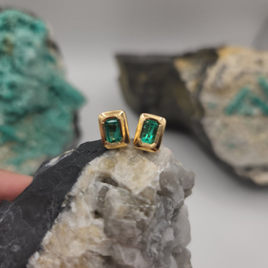 Handmade Colombian Emerald Earrings in 18 kt Yellow Gold, Vivid Green Natural Emerald, May Birthstone Jewelry, colombian emerald 1.40 ct
