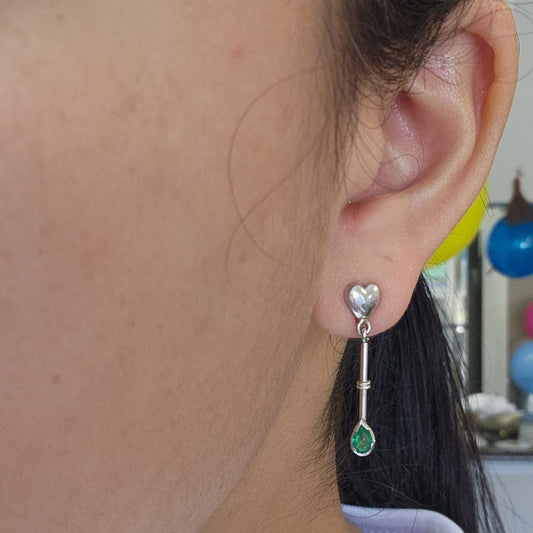 Colombian Emerald earrings 18 kt white gold, vivid green natural emerald, emerald crystal, may birthstone,handmade, colombian jewelry green