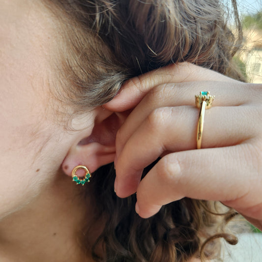 Safety earrings 18 kt yellow gold, colombian emerald, vivid green, emerald crystal, may birthstone,handmade, colombian jewelry green