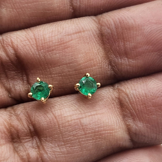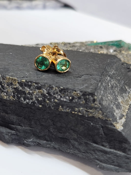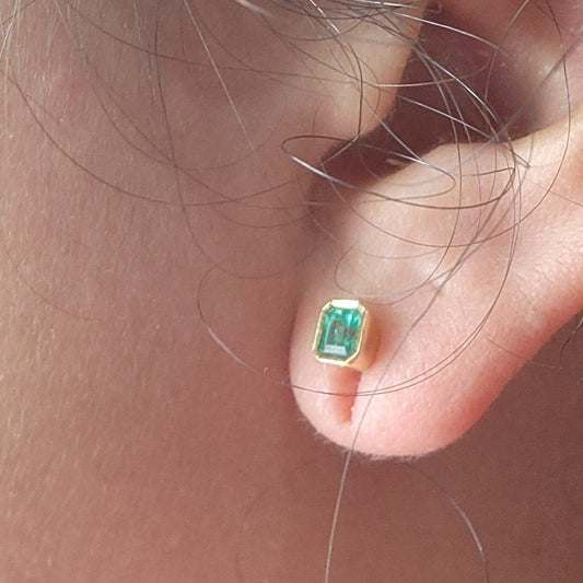 Colombian Emerald earrings 18 kt yellow gold, .40 ct aproxnatural emerald, emerald crystal, maybirthstone,handmade, colombian jewelry green