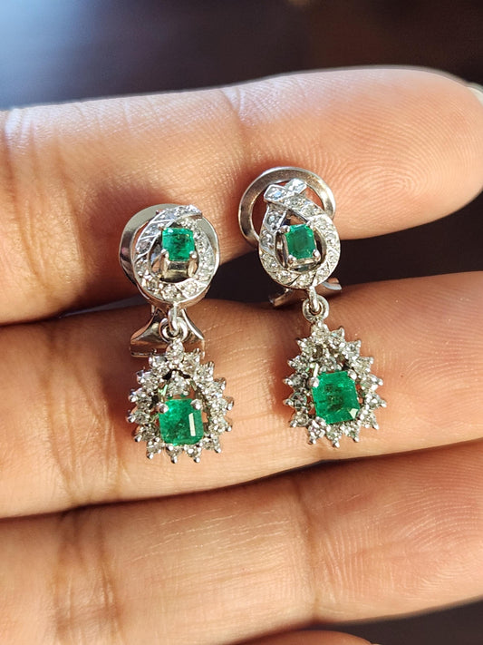 Handmade Colombian Emerald and diamond Earrings in 18 kt white gold, Vivid Green Natural Emerald, May Birthstone Jewelry, real diamonds