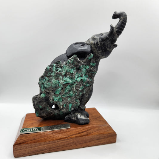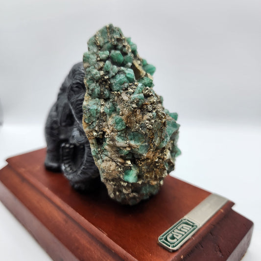 Elephant Sculpture, emerald Sculpture pyrite, handcrafted made by Colombian artisans, using the matrix of the Emerald, collectors, gifts,