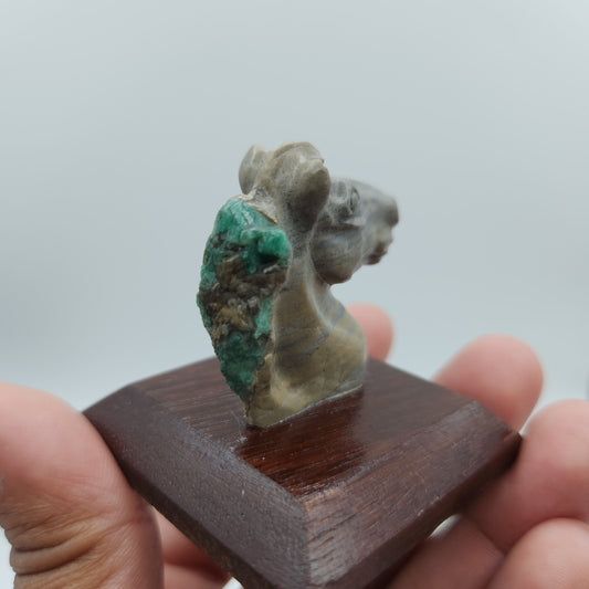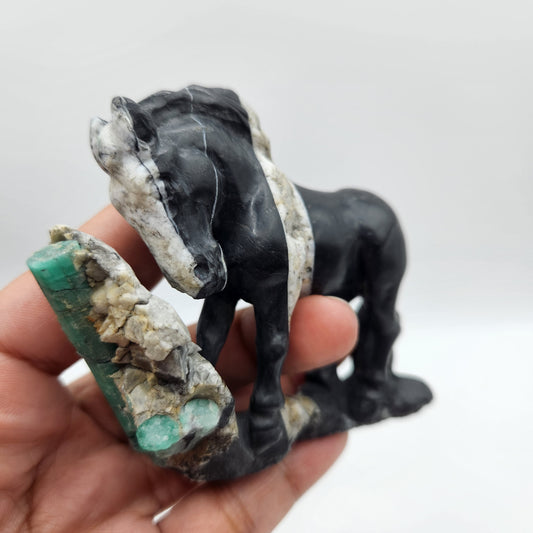 Horse Sculpture, emerald Sculpture handcrafted pieces, made by Colombian artisans, using the matrix of the Emerald, collectors, gifts, stone