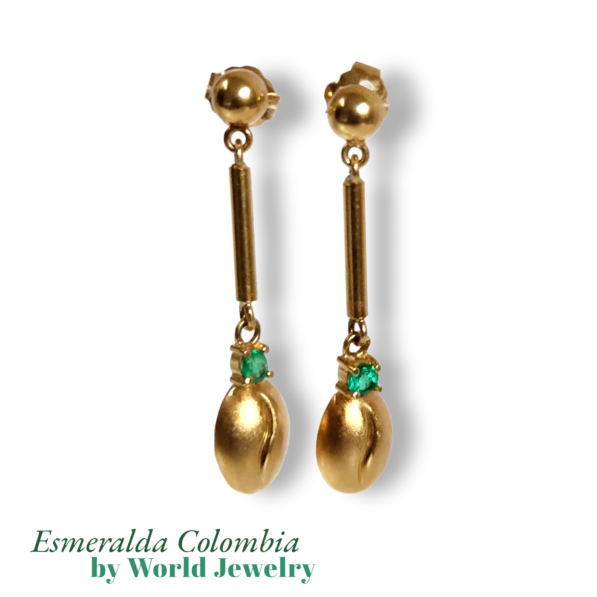 "Colombian Coffee Bean" Style Drop & Dangle Earrings in 18k Yellow Gold